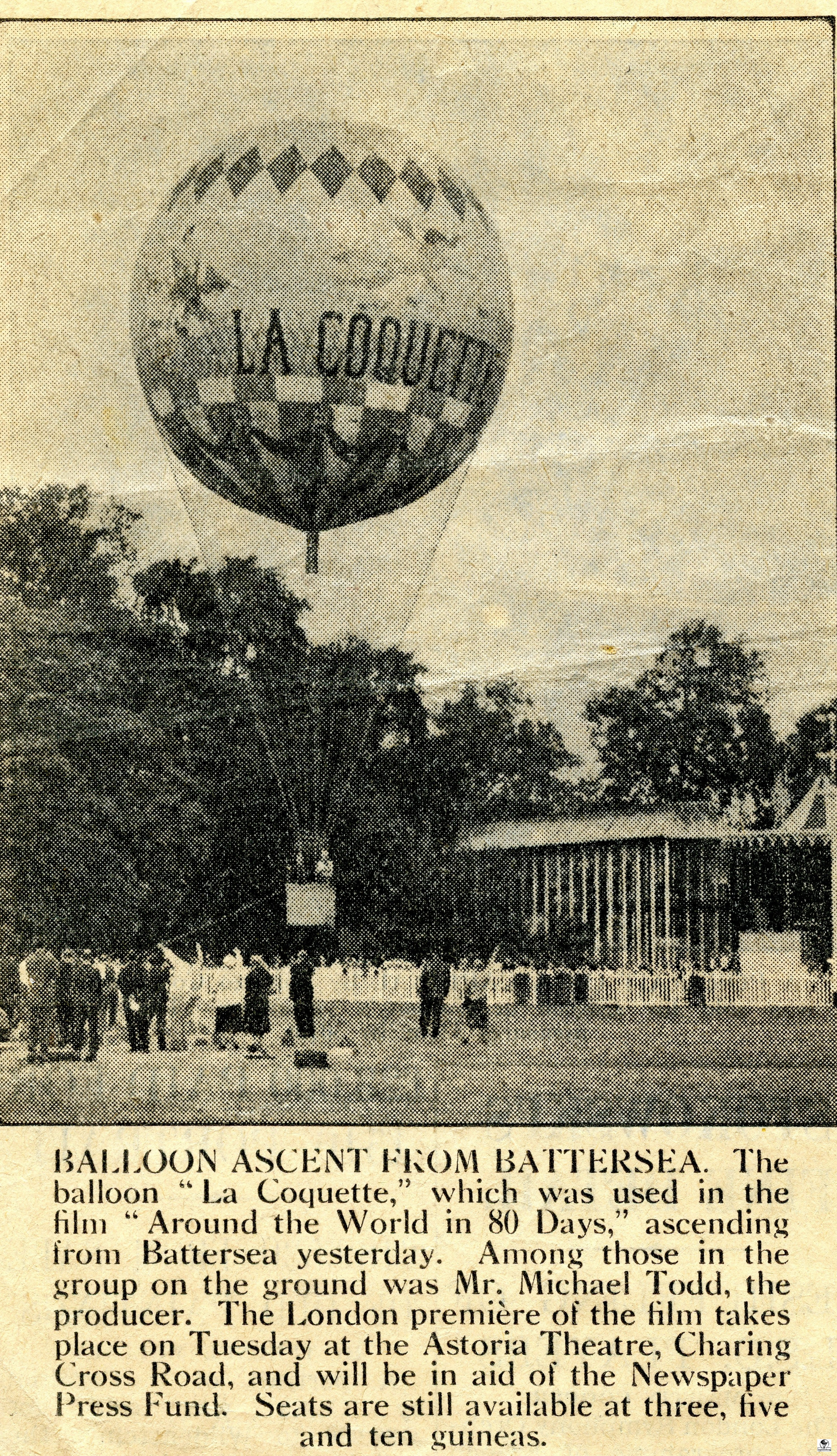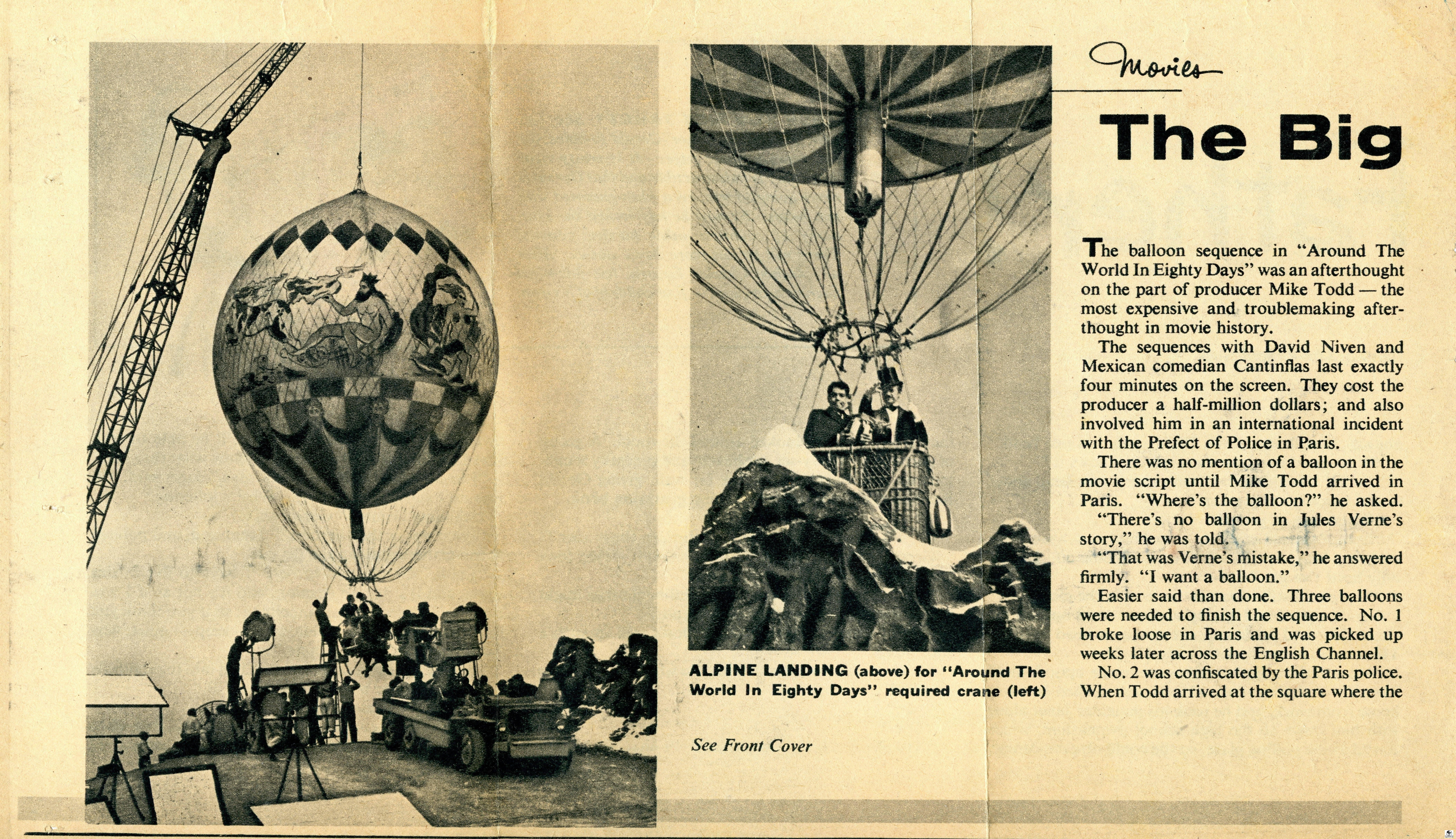 The movie Around the World in 80 Days was filmed in 1955. In Jules Verne’s original version of the book, there was no balloon flight. The use of a balloon was the idea of the movie’s producer Michael Todd. Mr. Todd named the balloon in the movie La Coquette, which in French means ‘the flirt’.