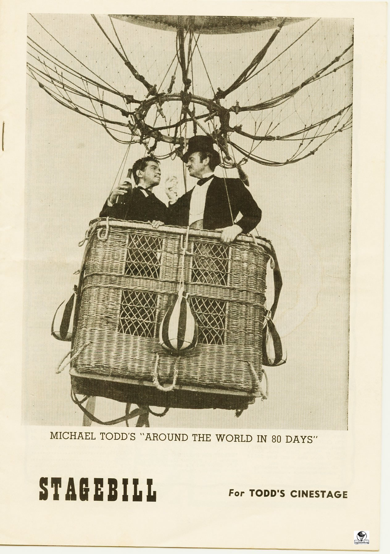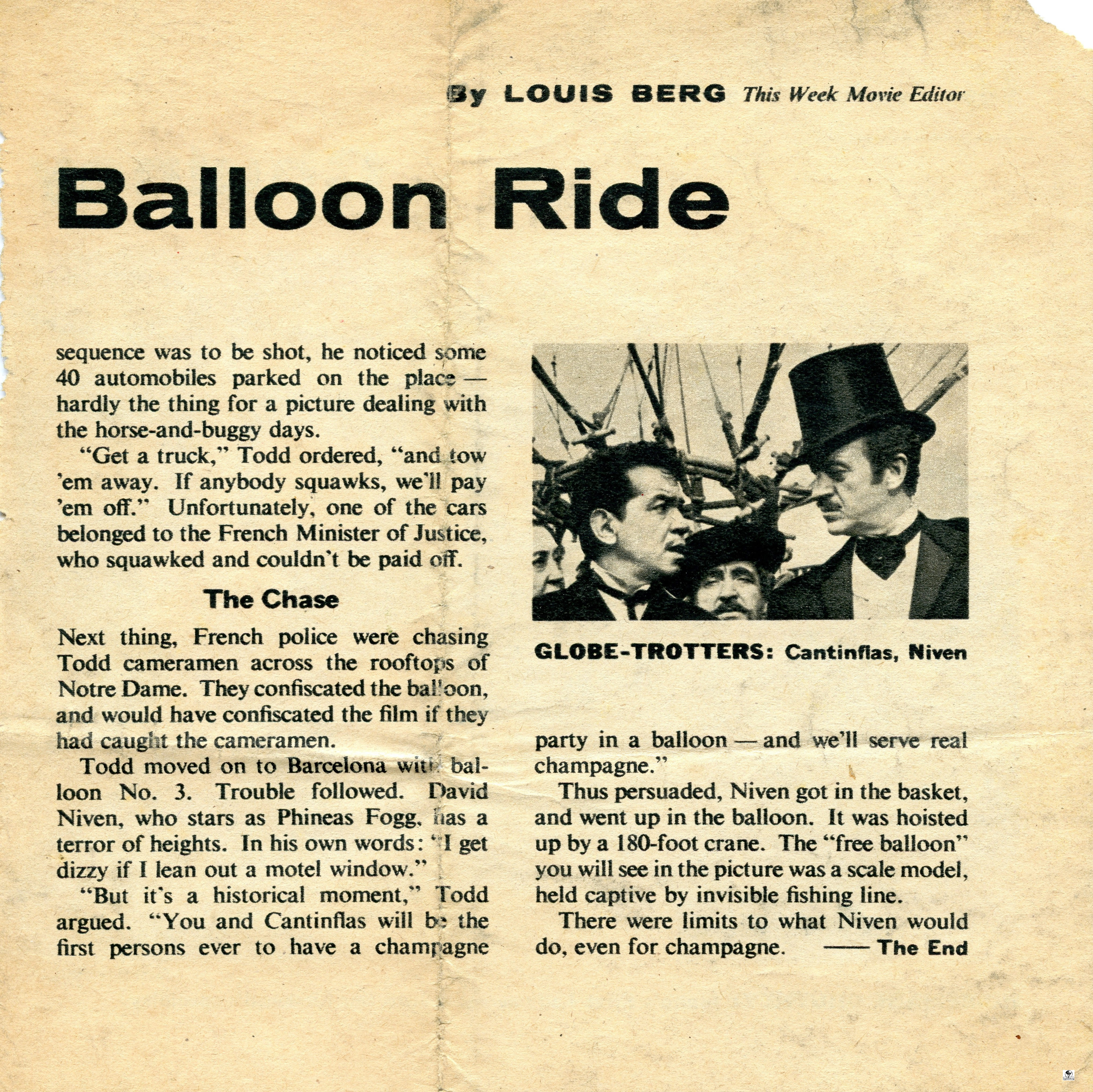 In the basket = David Niven with the top hat and Mexican comedian Cantinflas.