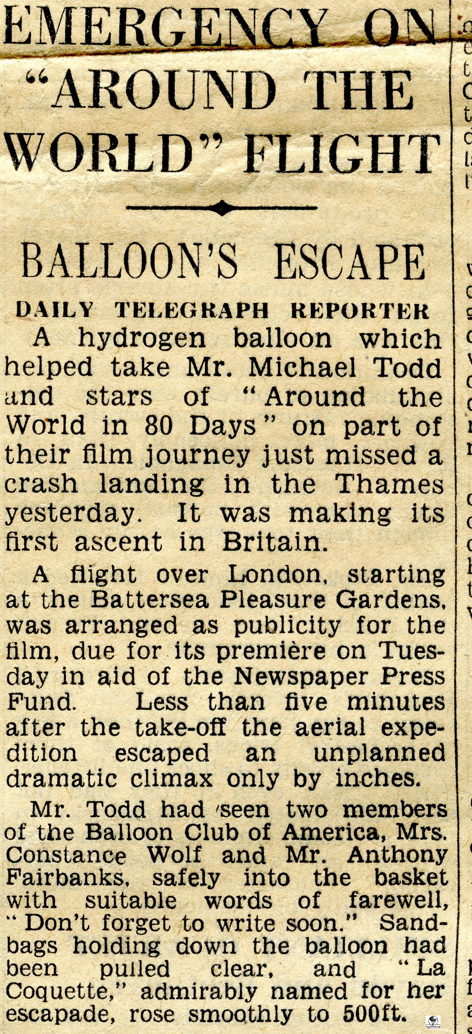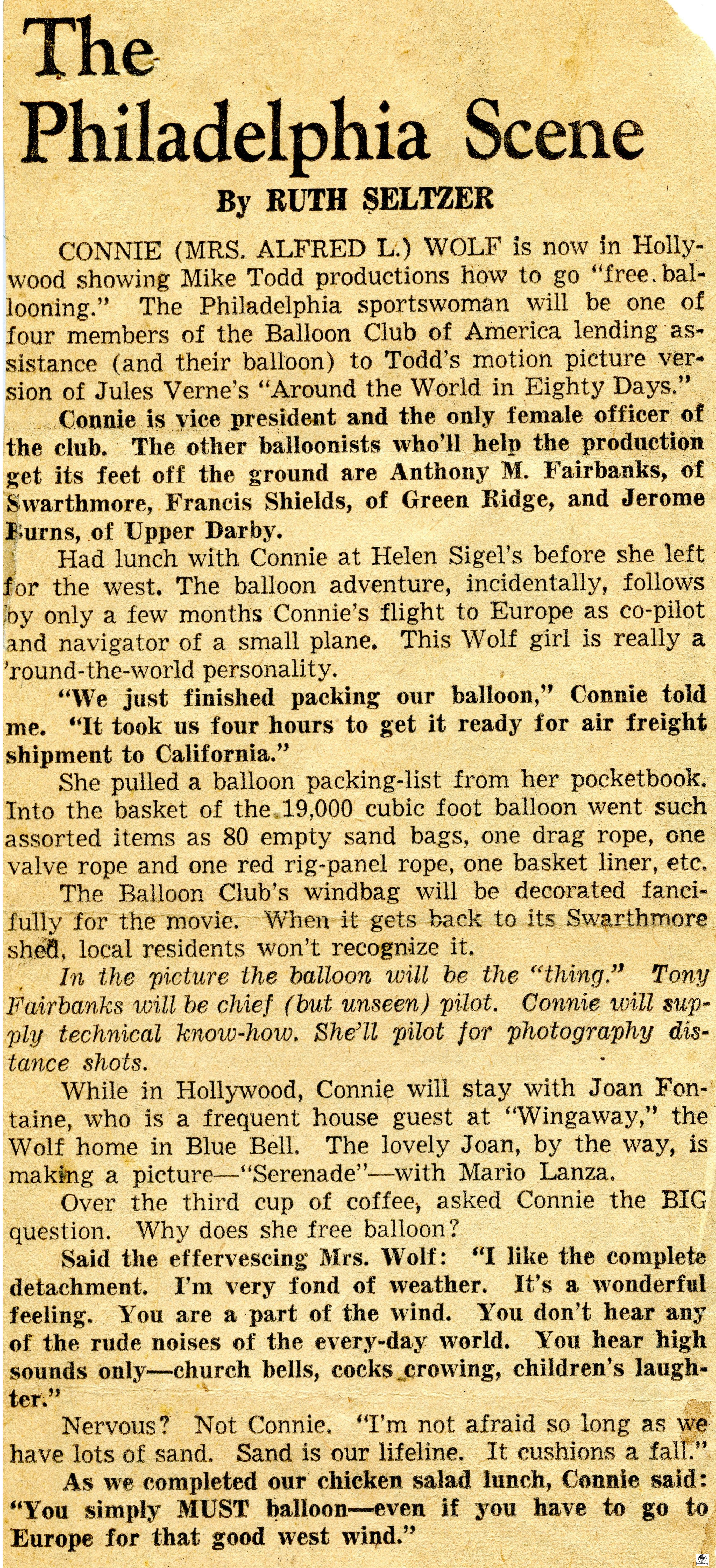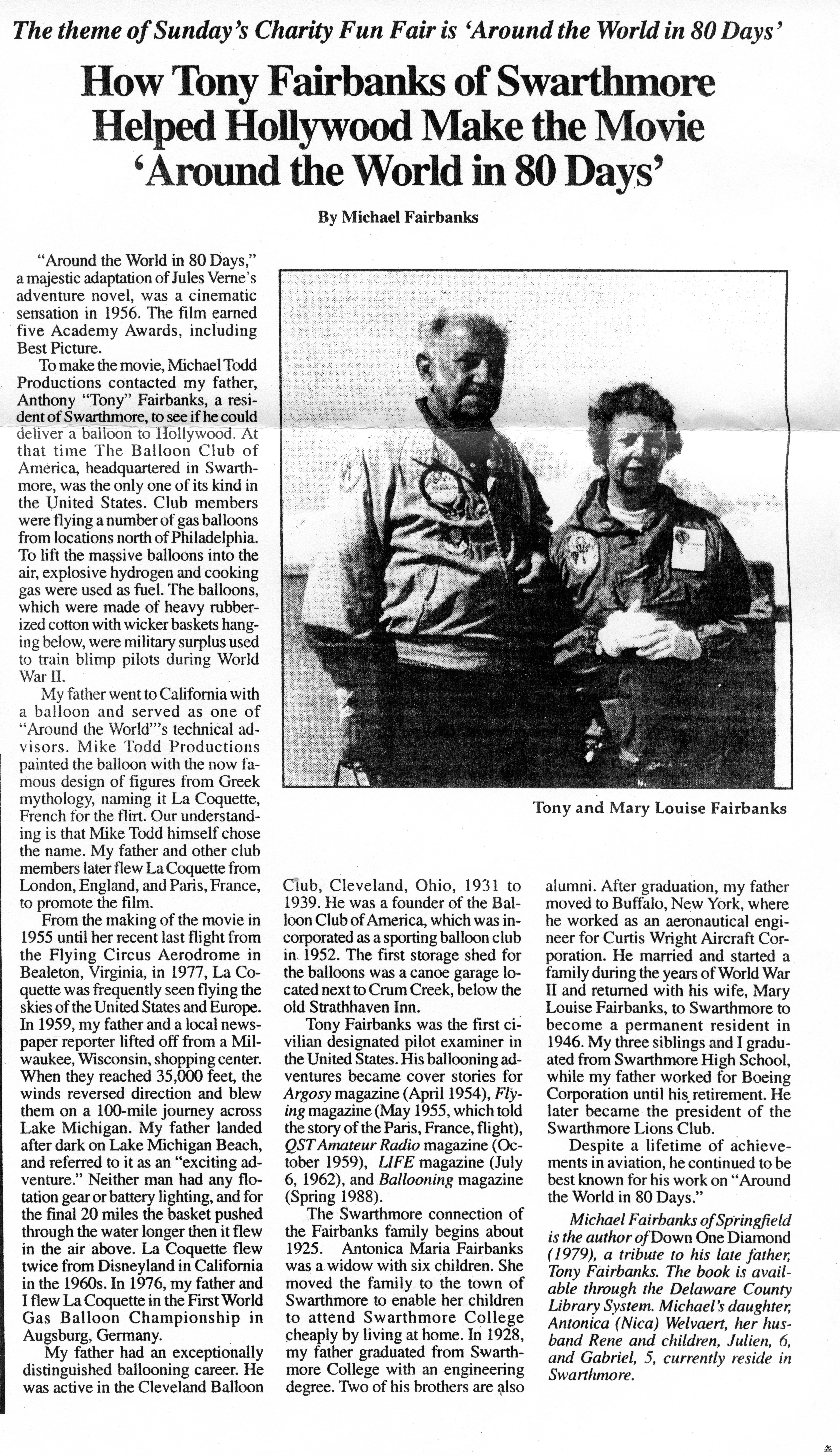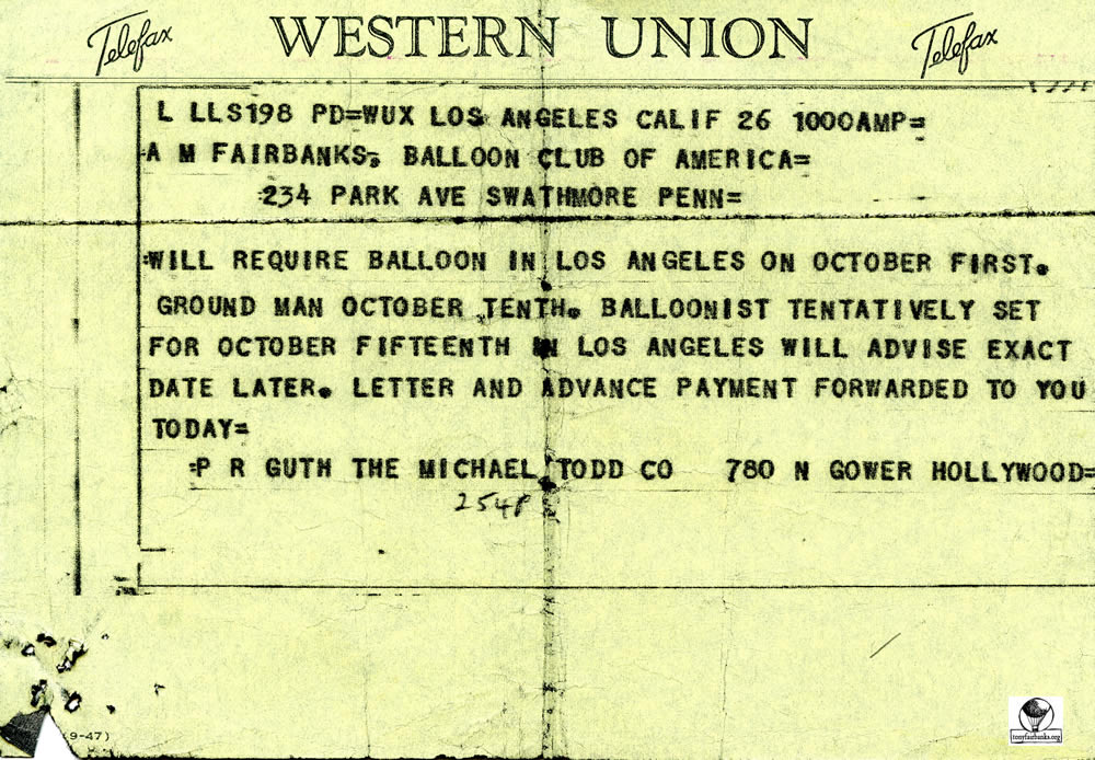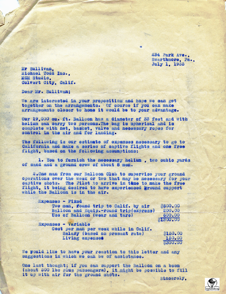Mike Todd contacted the Balloon Club of America looking for a balloon. At that time, in 1953, it was the only club in the United States flying balloons.
