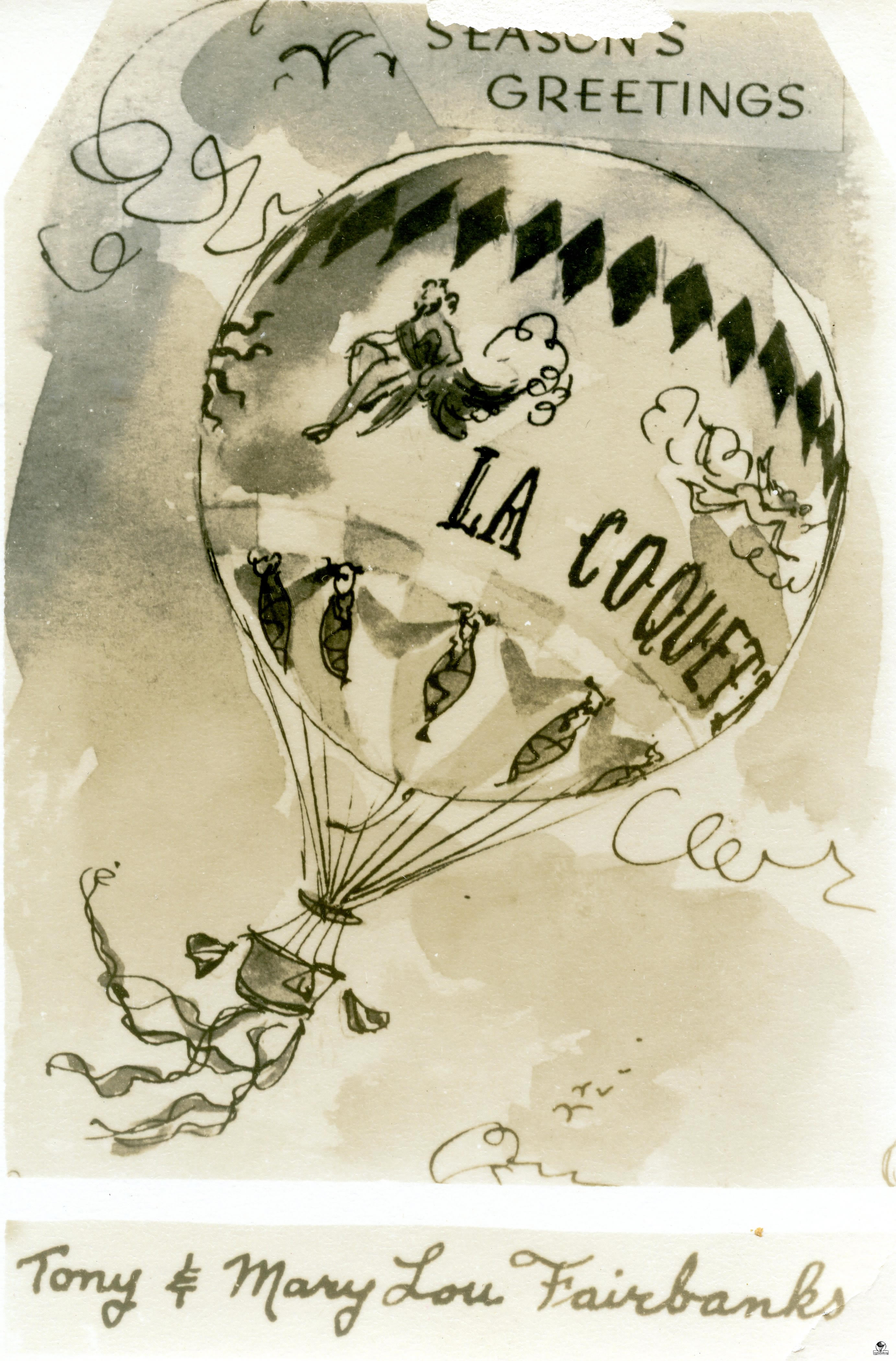 The Club’s 19,00 cubic foot silver balloon was shipped to Hollywood in 1955 to be transformed into the well known balloon, La Coquette. It was originally a Navy balloon constructed in 1928.