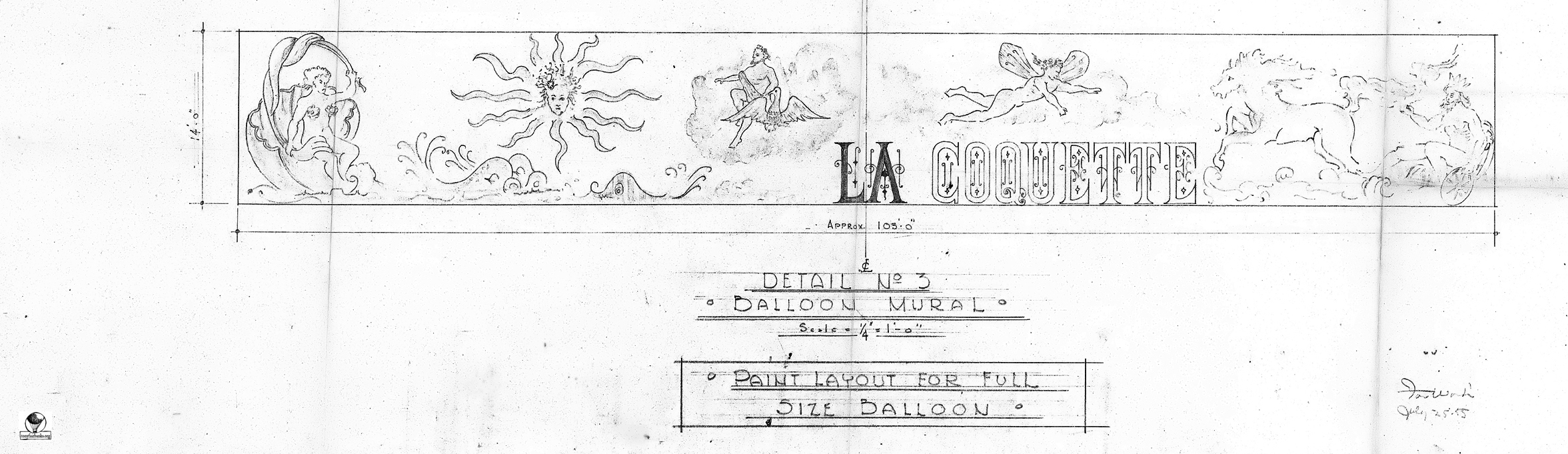 This is the drawing of the print layout for the full size balloon named La Coquette.