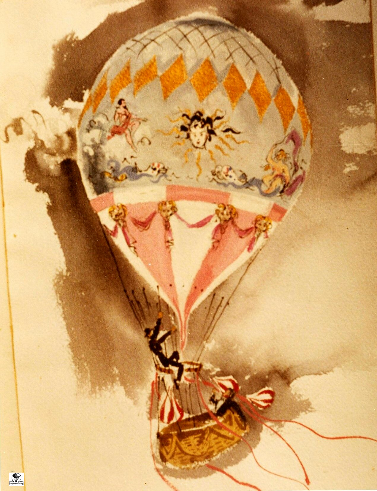 This is a photograph of the original painting, which was completed before the silver 19,000 cubic-foot balloon was painted. This was Hollywood’s idea of how they wanted the balloon to look for the movie.