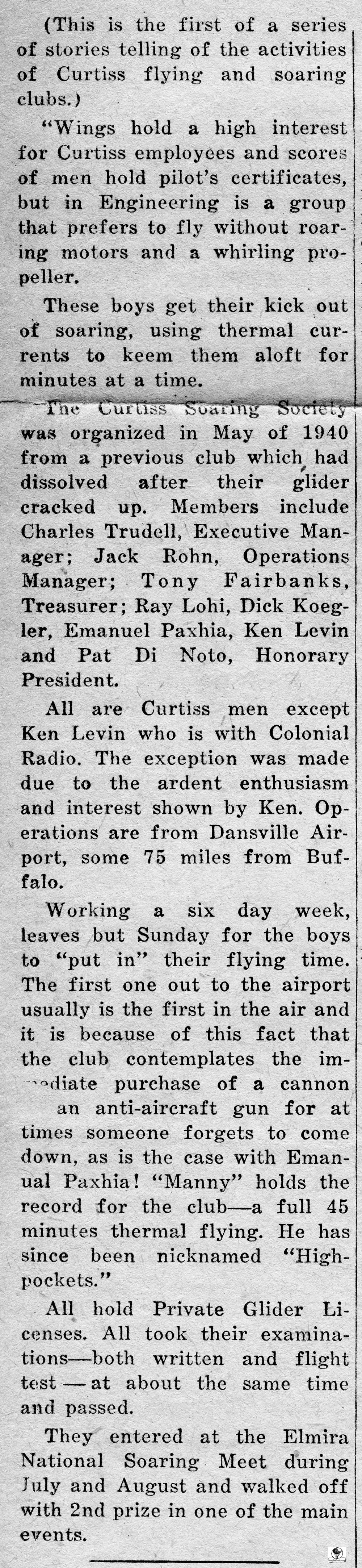 Glider and Soaring Contest – 1941