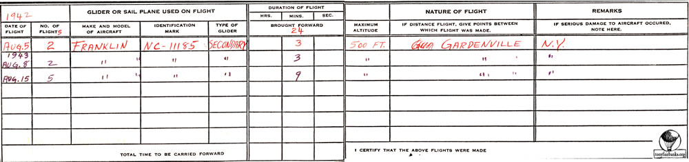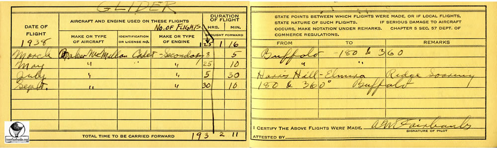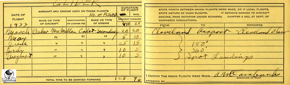 He also flew the Baker-McMillan Cadet glider. This is a high-wing, strut-braced, open-cockpit, single-seat glider designed in 1929. The Cadet is built with a steel tube fuselage and a wooden wing that is supported by dual parallel struts, with jury struts. The tail is a wire-braced wooded structure. The whole aircraft is covered in doped aircraft fabric covering. It was designed as an aircraft that would offer soaring capability.