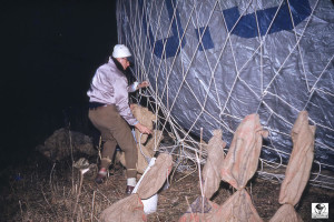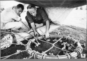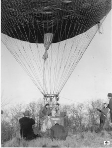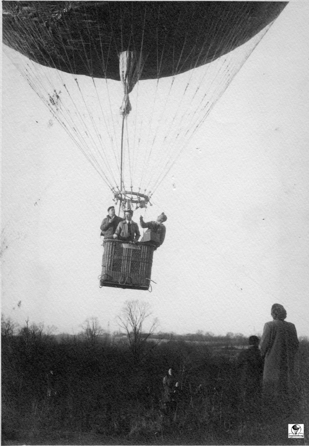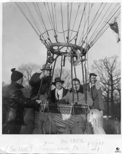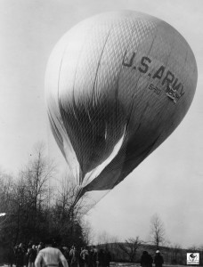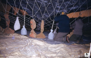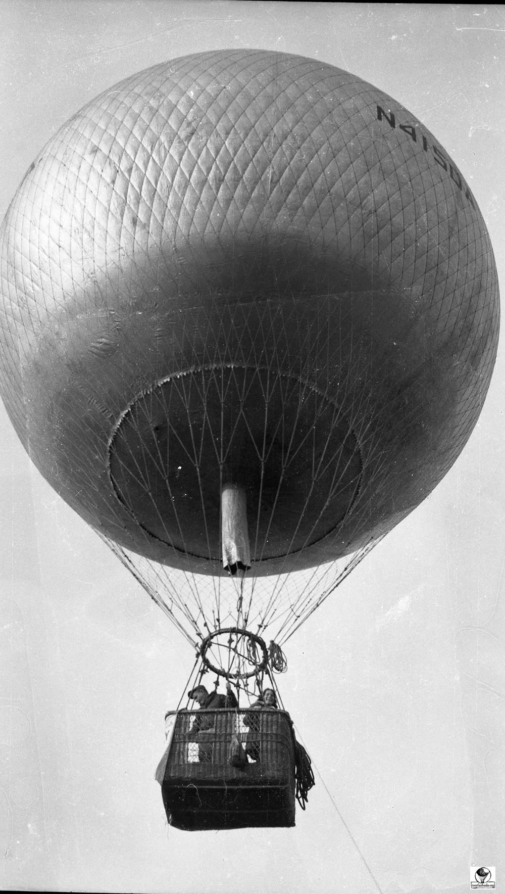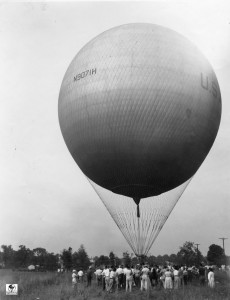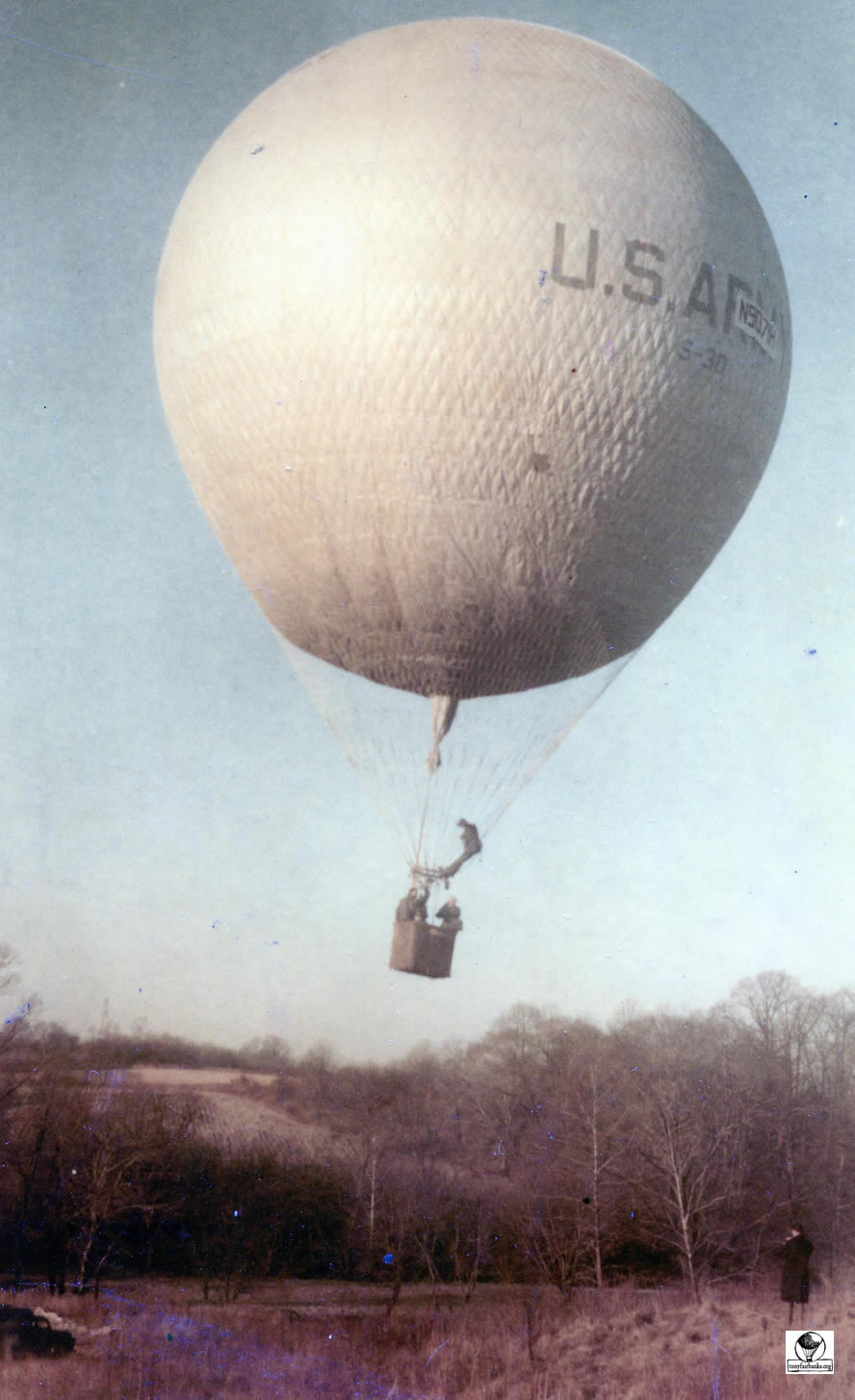 When the balloons were first given an ‘N’ number, the number was on entered on fabric and attached to the net. This was used until the number could be permanently painted onto the envelope. See arrow pointing to the attachment of the ‘N’ number. N9071H is the old 80 (80,000 cu. ft.) balloon.
