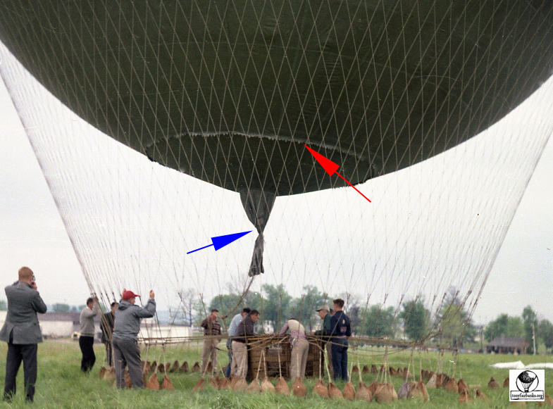 The red arrow – this shows the fringe around the appendix. It is used to catch rain or collected condensation to avoid dripping on the occupants in the basket. It drips outside of the basket.