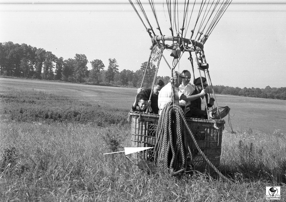 For all flights of the Balloon Club of America after this unfortunate landing, the drag ropes would be rolled into a ball which was placed in a cotton carrying case attached to the side of the wicker basket.