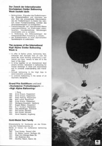 • to bring together on an International level, people actively interested in ballooning for mutual exchange of ideas and experiences, and to promote understanding and friendship through ballooning in the High Alps