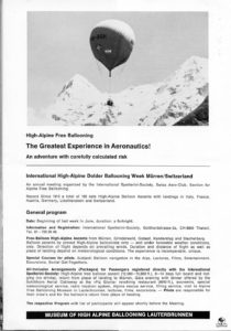 • to offer balloon pilots, ballooning fans, scientists and Alpinists from all over the world the most exciting experience a balloonist can have, namely to take off in the heart of the Alps