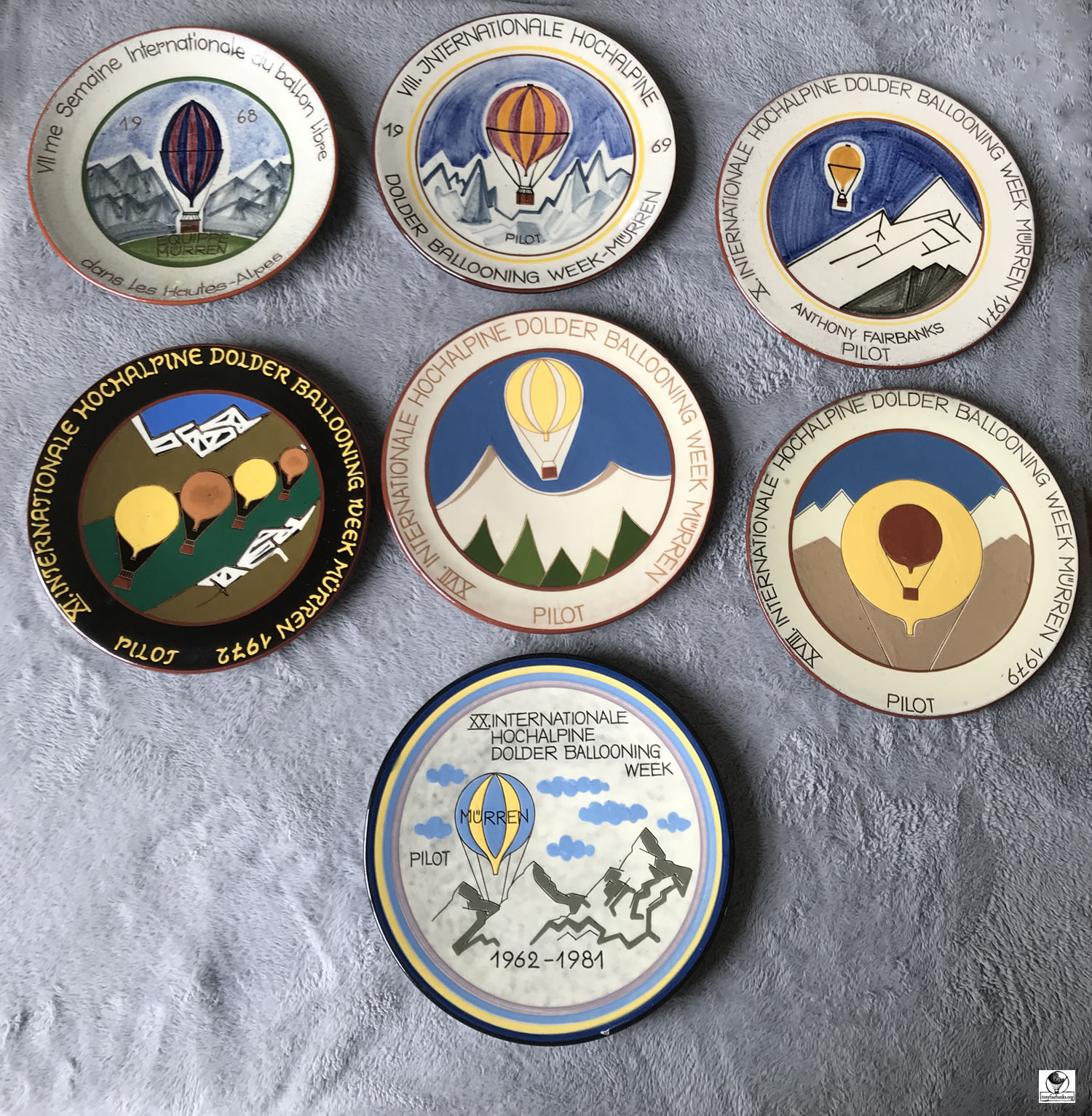 Once all flights are completed during Fred Dolder’s Alpine week, there is a banquet for Pilots and crew. At this time, each pilot is given a Plate as a memento for a successful flight. The following are the Plates given Tony after each of his flights over the Alps. They are in order of his flights.