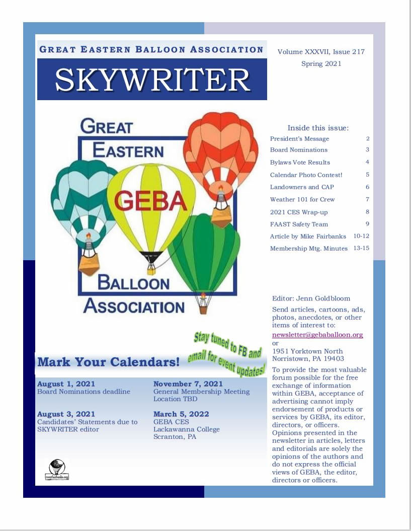 Permission given by The Great Eastern Balloon Association (GEBA)
